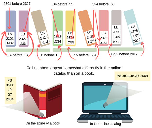To the right, you can see how the LC system's call numbers work, if you were to look at a shelf of books.